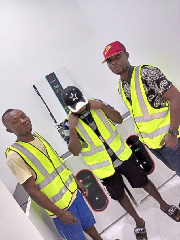Energy Storage System Setup and Configuration In this image, our team is seen preparing and configuring an advanced energy storage system. This setup is part of a broader solution to ensure reliable backup power during outages, providing the client with uninterrupted energy supply. Location: Lagos