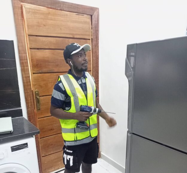Home Energy Storage Installation This image shows one of our technicians completing the installation of a home energy storage system. This setup allows the client to store excess solar energy generated during the day and use it during peak hours or in case of a grid outage. Location: Lagos