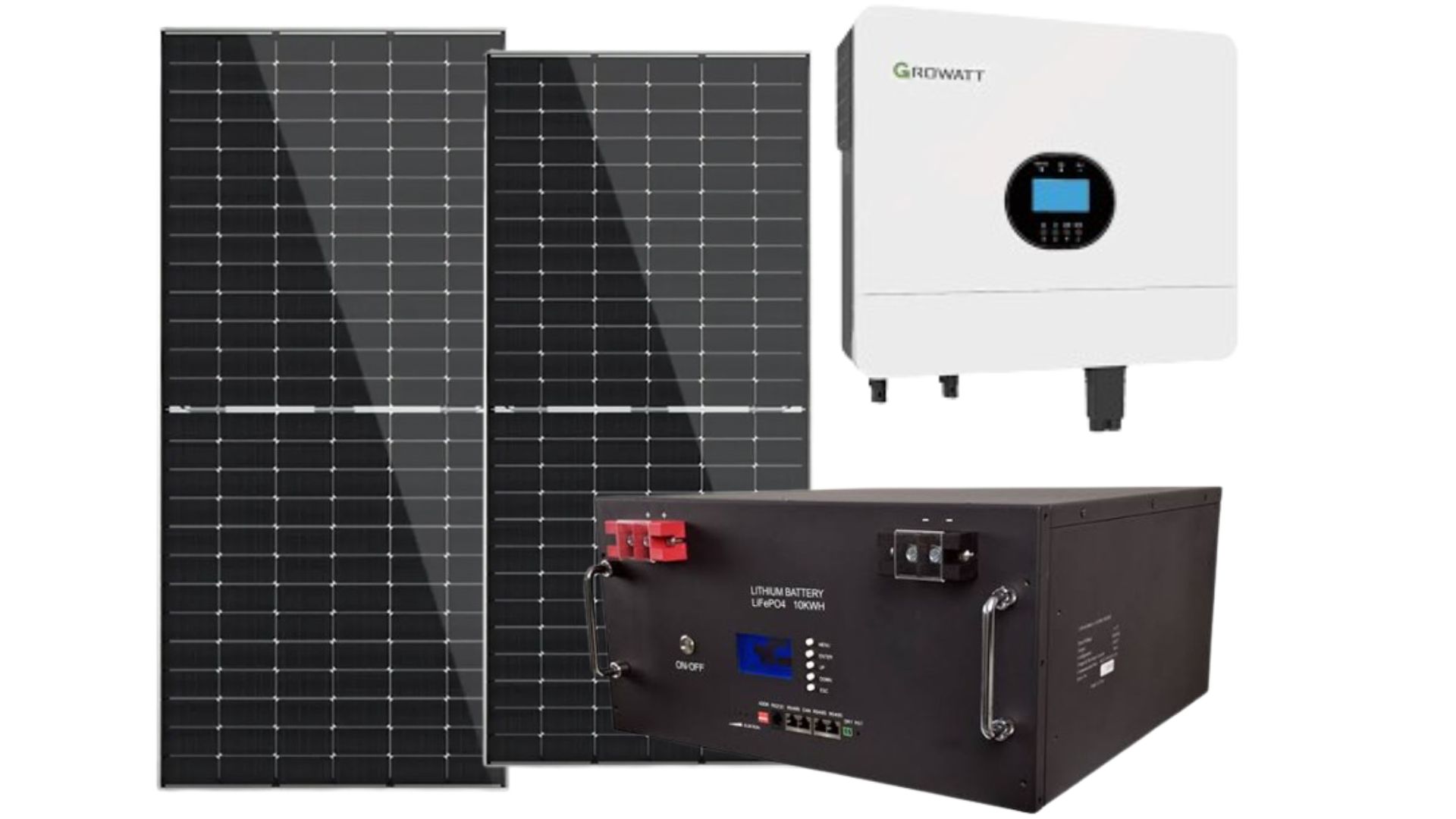 - Inverter: 6 kVA High-Voltage Hybrid Growatt Inverter